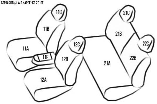 | Особенности | Водительское сиденье с подлокотником. Подходит для автомобилей с обогревом сидений. (эффект обогрева становится слабее). Внимание, при установке деталей 21B и 22B, сначала снимаются крышки с обратной стороны сидений. Затем ставится чехол. После, крышки устанавливаются на свои места. | ||