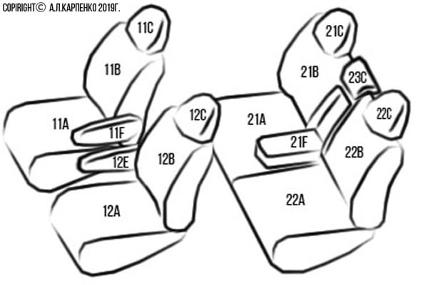 Особенности Сиденья первого ряда на ручном управлении. Второй ряд делится в пропорции 60/40. Во втором ряду имеется центральный подголовник. Требуется изготовление отверстия для подлокотника первого ряда по месту установки .